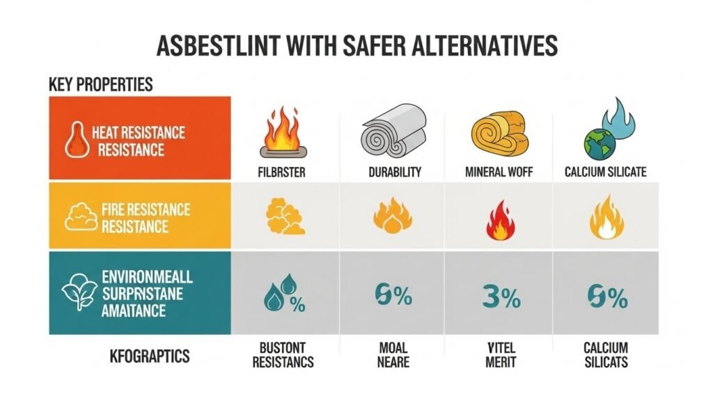 - Fiberglass: A common alternative that offers heat resistance and durability without the health risks of asbestlint.