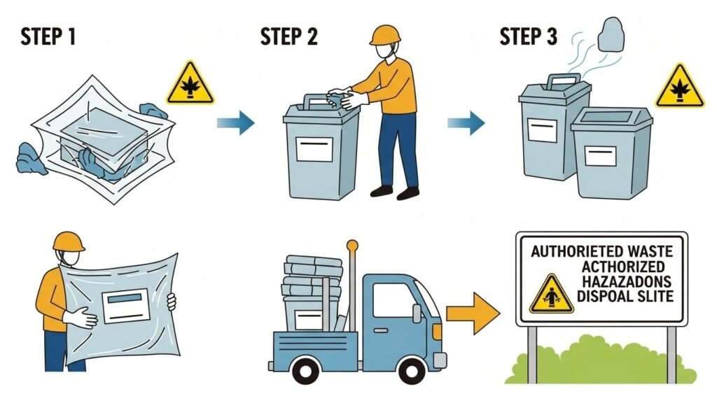 Once removed, the material should be sealed and disposed of at a licensed hazardous waste site.